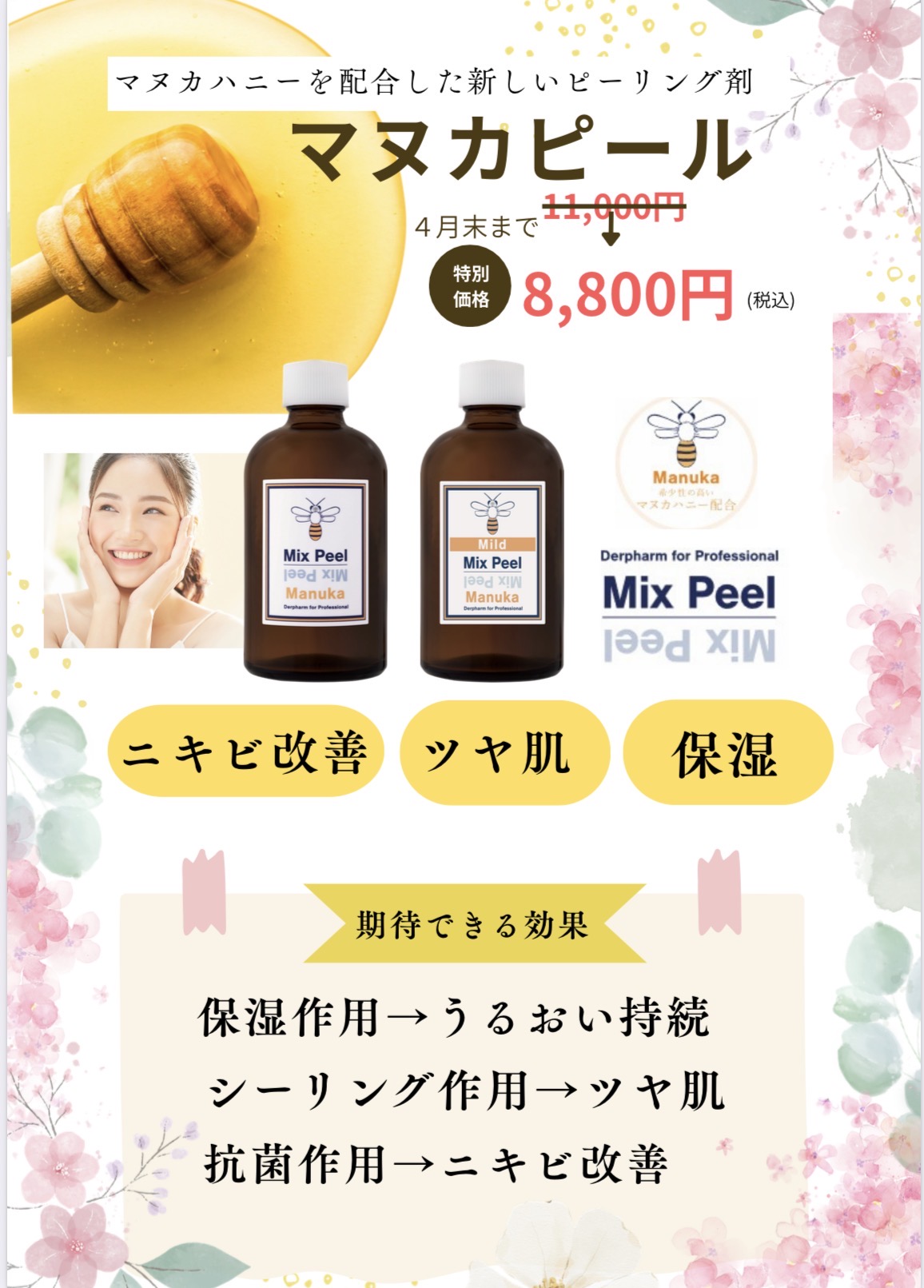 マヌカハニーを配合したピーリング治療です。